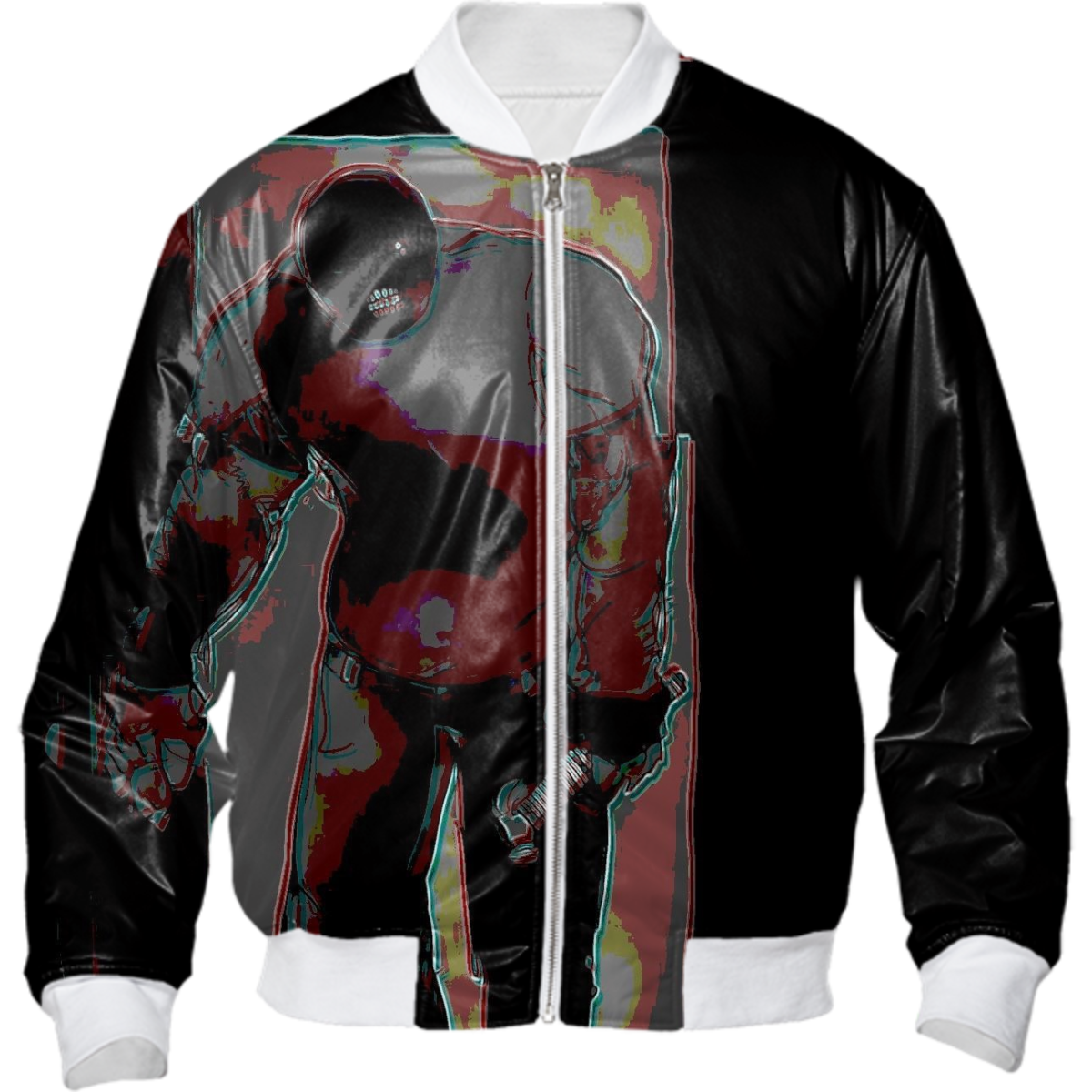Light weight bombr jacket with your choice of white or black ribbing slight padding zip up front and side pockets. The inside is adorned with PAOM straps for swinging over your shoulders so you dont have to hold it.