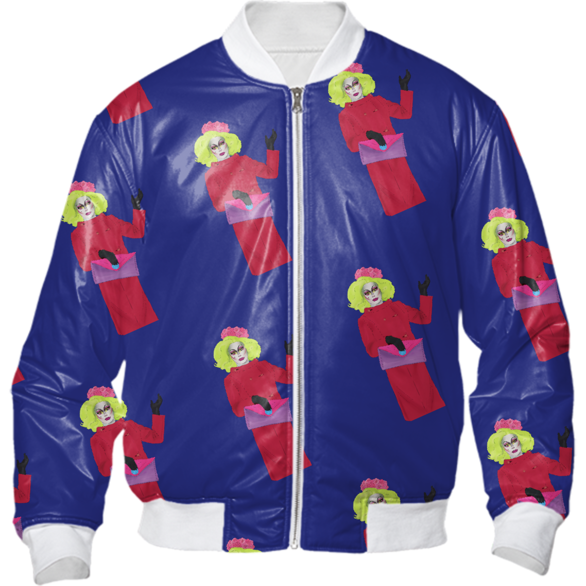 Light weight bombr jacket with your choice of white or black ribbing slight padding zip up front and side pockets. The inside is adorned with PAOM straps for swinging over your shoulders so you dont have to hold it.