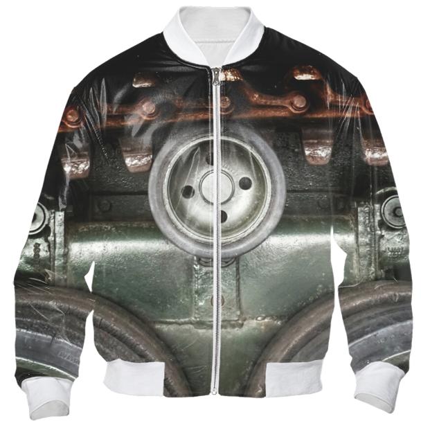 Light weight bombr jacket with your choice of white or black ribbing slight padding zip up front and side pockets. The inside is adorned with PAOM straps for swinging over your shoulders so you dont have to hold it.