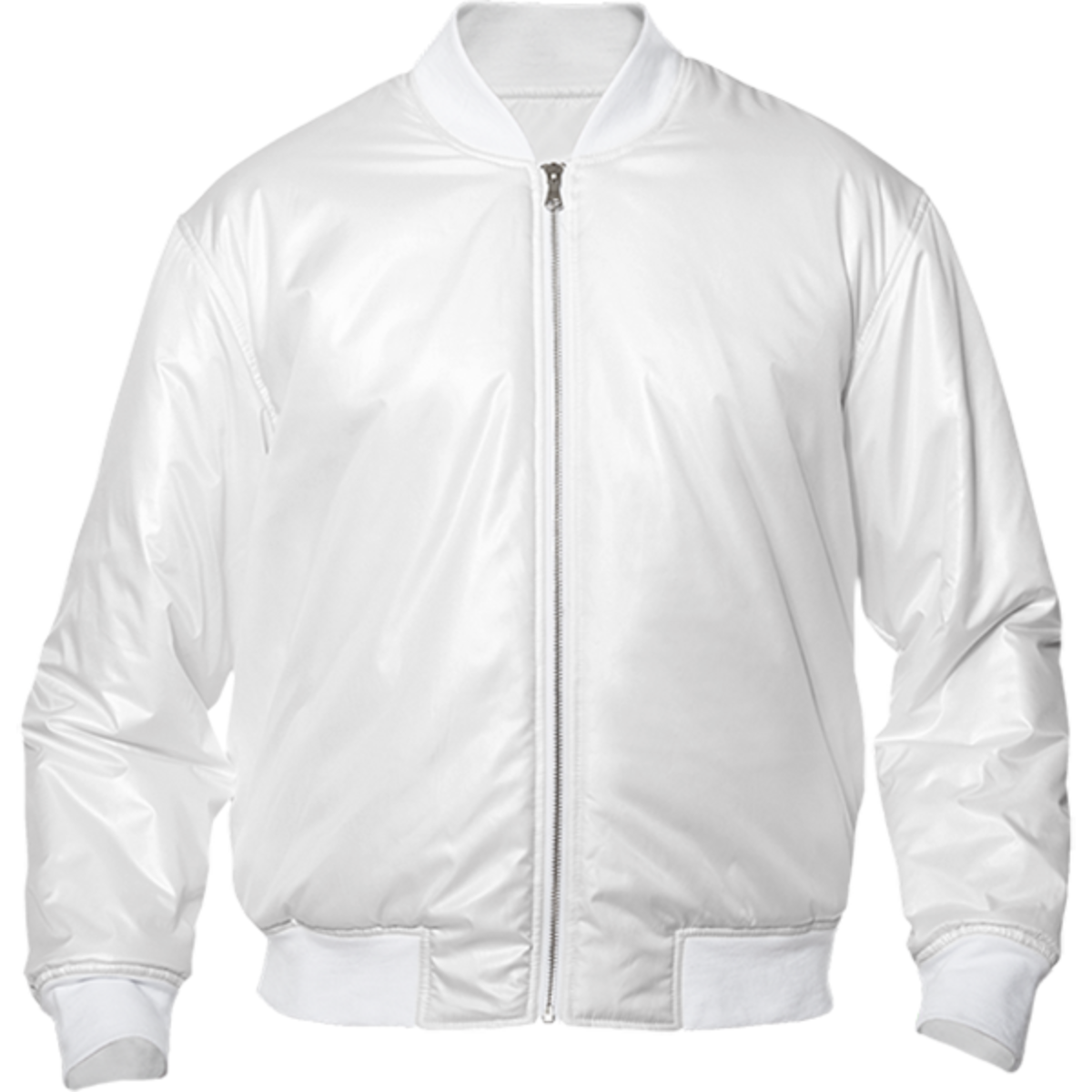Light weight bombr jacket with your choice of white or black ribbing slight padding zip up front and side pockets. The inside is adorned with PAOM straps for swinging over your shoulders so you dont have to hold it.