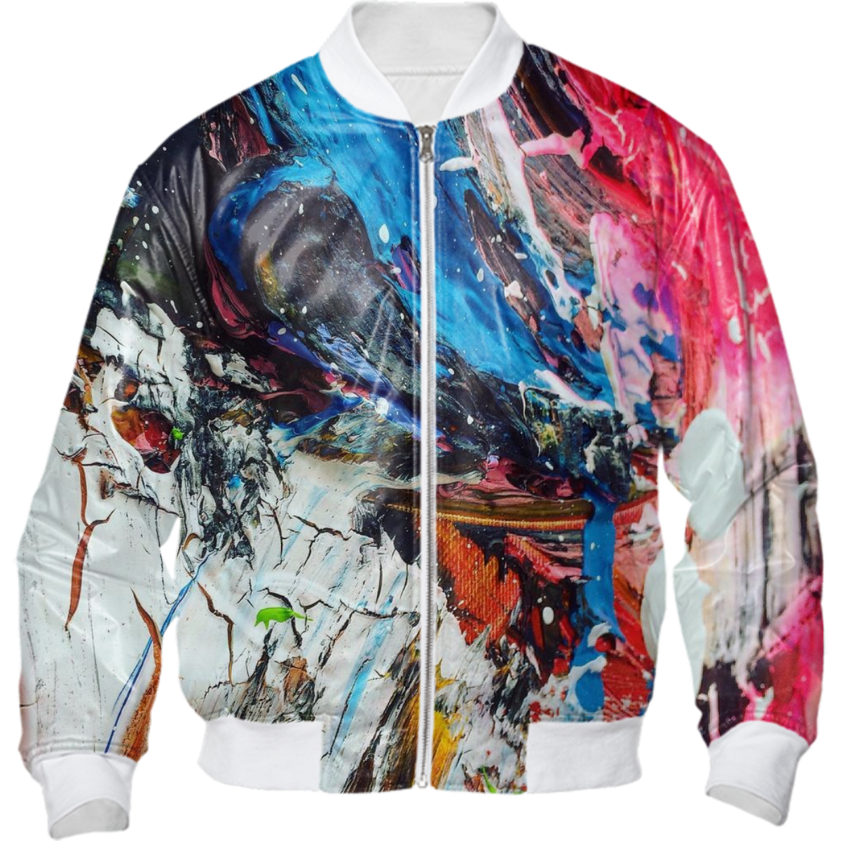Light weight bombr jacket with your choice of white or black ribbing slight padding zip up front and side pockets. The inside is adorned with PAOM straps for swinging over your shoulders so you dont have to hold it.