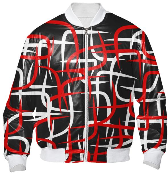 Light weight bombr jacket with your choice of white or black ribbing slight padding zip up front and side pockets. The inside is adorned with PAOM straps for swinging over your shoulders so you dont have to hold it.