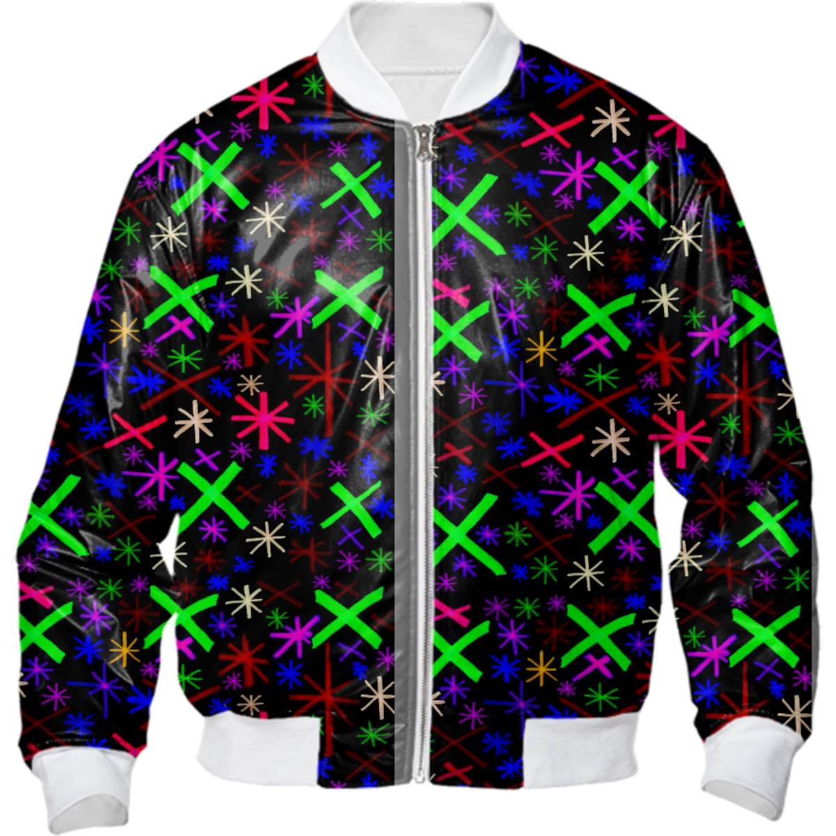 Light weight bombr jacket with your choice of white or black ribbing slight padding zip up front and side pockets. The inside is adorned with PAOM straps for swinging over your shoulders so you dont have to hold it.