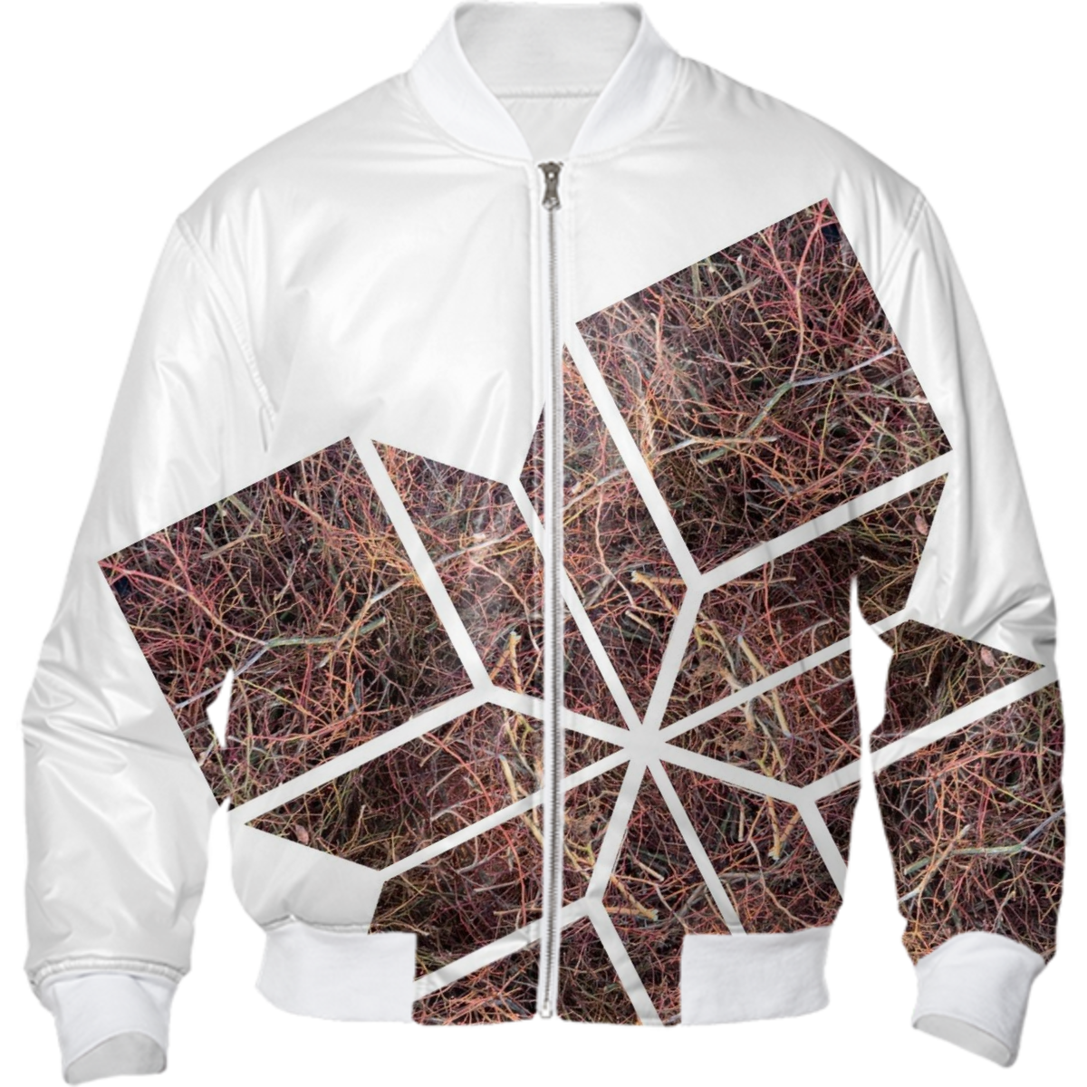 Light weight bombr jacket with your choice of white or black ribbing slight padding zip up front and side pockets. The inside is adorned with PAOM straps for swinging over your shoulders so you dont have to hold it.
