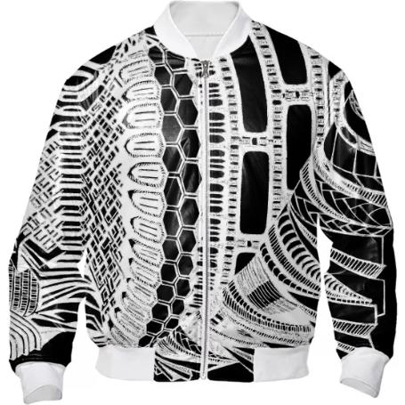 Light weight bombr jacket with your choice of white or black ribbing slight padding zip up front and side pockets. The inside is adorned with PAOM straps for swinging over your shoulders so you dont have to hold it.