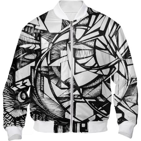 Light weight bombr jacket with your choice of white or black ribbing slight padding zip up front and side pockets. The inside is adorned with PAOM straps for swinging over your shoulders so you dont have to hold it.
