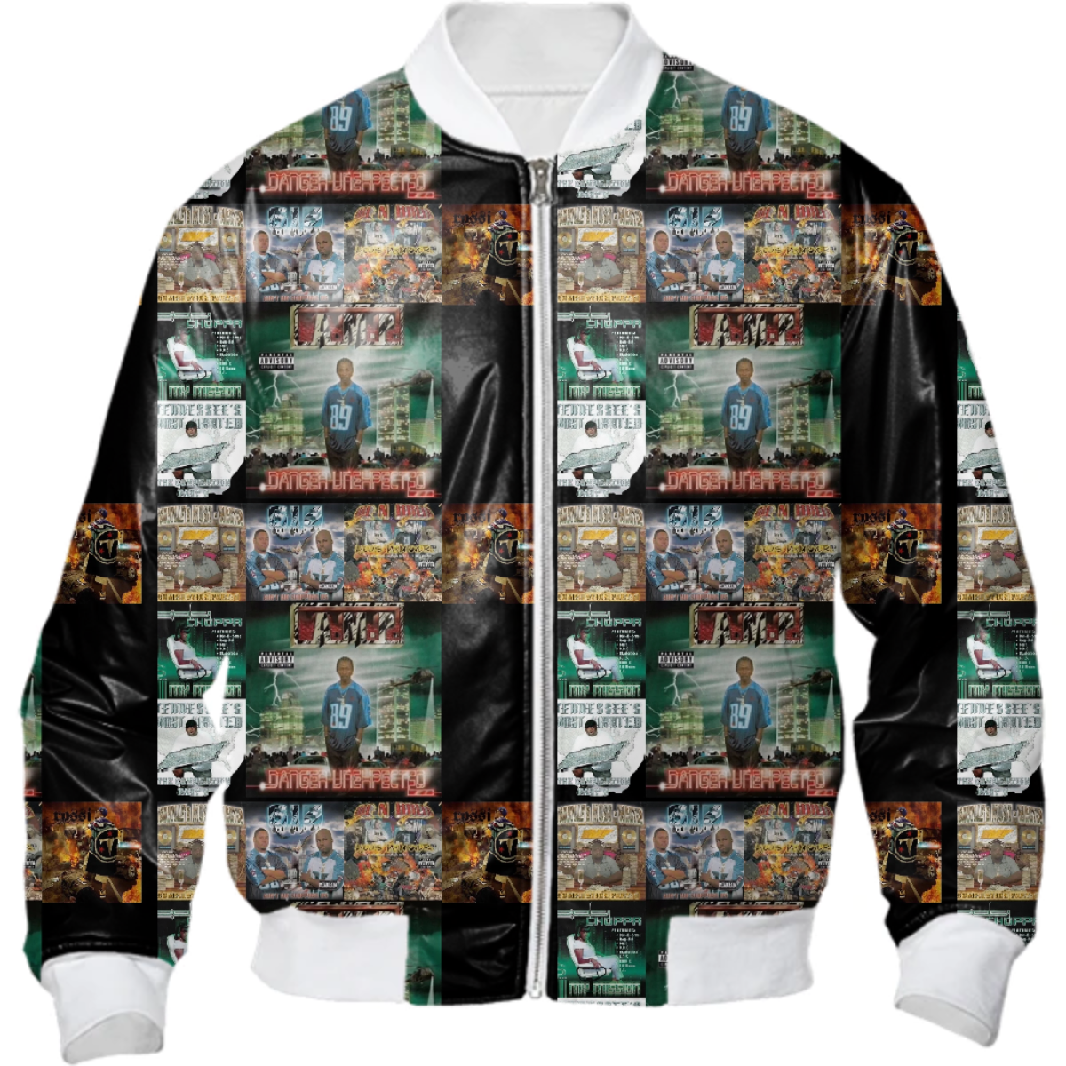 Light weight bombr jacket with your choice of white or black ribbing slight padding zip up front and side pockets. The inside is adorned with PAOM straps for swinging over your shoulders so you dont have to hold it.