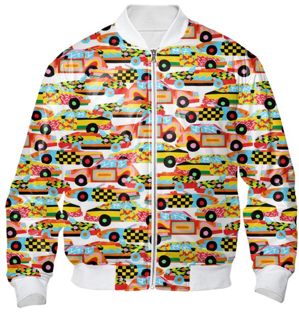 Light weight bombr jacket with your choice of white or black ribbing slight padding zip up front and side pockets. The inside is adorned with PAOM straps for swinging over your shoulders so you dont have to hold it.