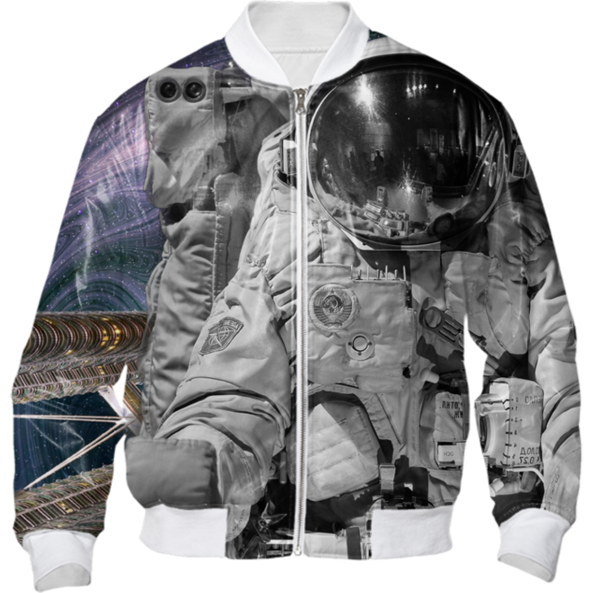 Light weight bombr jacket with your choice of white or black ribbing slight padding zip up front and side pockets. The inside is adorned with PAOM straps for swinging over your shoulders so you dont have to hold it.