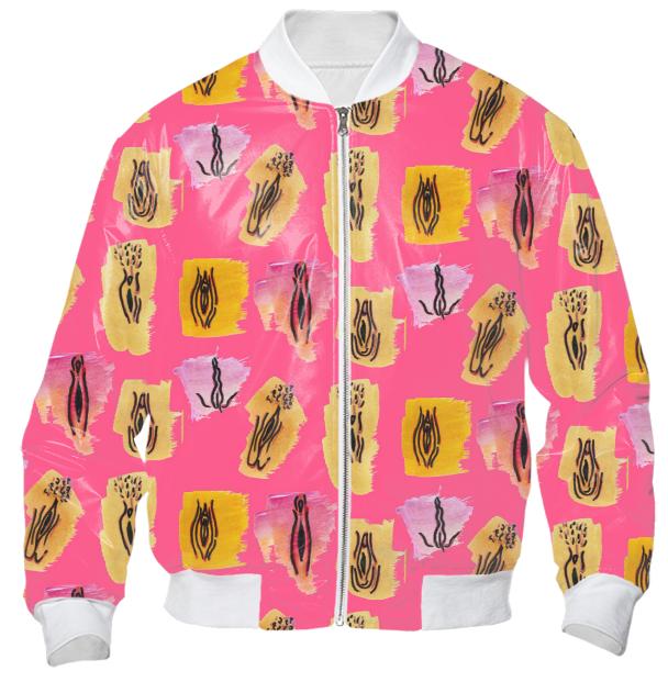 Light weight bombr jacket with your choice of white or black ribbing slight padding zip up front and side pockets. The inside is adorned with PAOM straps for swinging over your shoulders so you dont have to hold it.