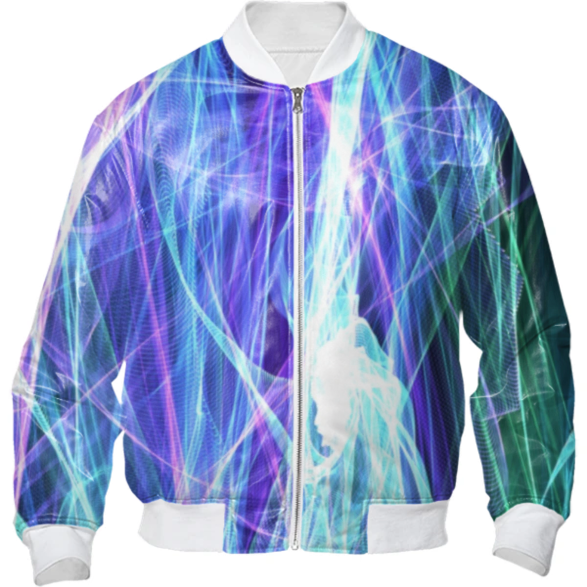 Light weight bombr jacket with your choice of white or black ribbing slight padding zip up front and side pockets. The inside is adorned with PAOM straps for swinging over your shoulders so you dont have to hold it.