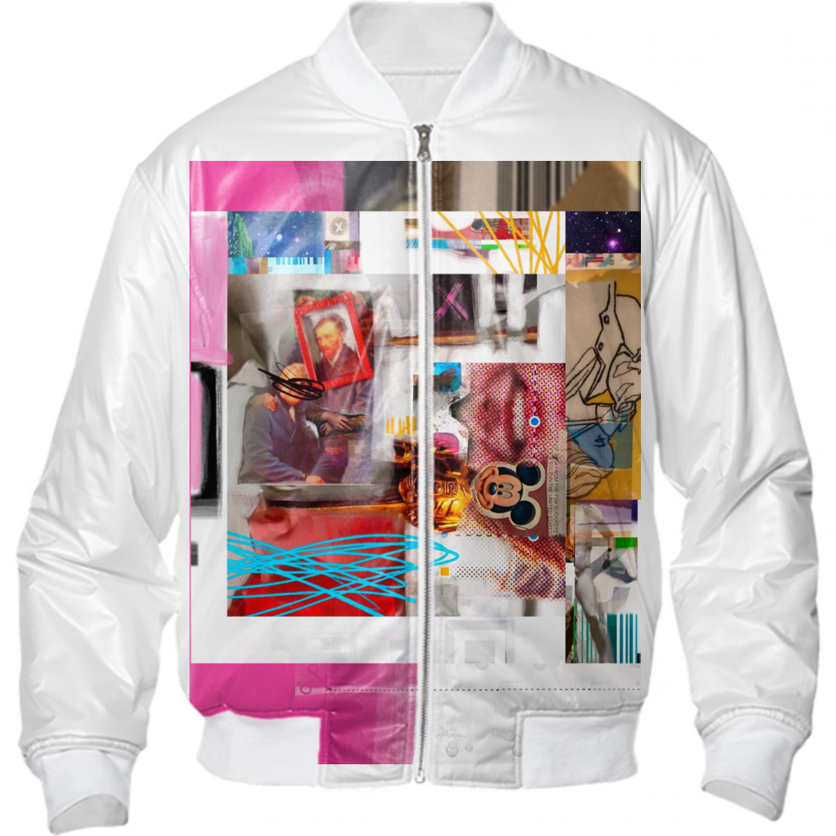 Light weight bombr jacket with your choice of white or black ribbing slight padding zip up front and side pockets. The inside is adorned with PAOM straps for swinging over your shoulders so you dont have to hold it.