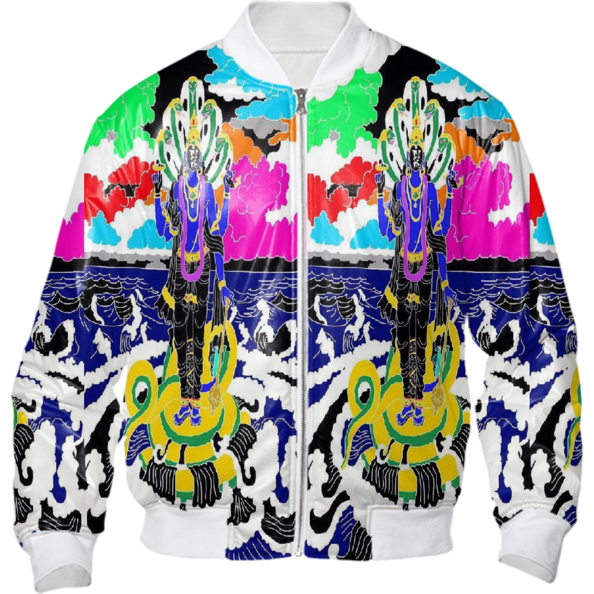 The uploaded file will be printed on the entire front and be mirrored on the back. Because of our cut and sew process some print elements on pockets seams and sleeves might not match up. For best results please upload a PNG or JPG with RGB color profile and dimensions of at least 40 inches width by 30 inches length. DPI can be as low as 72.