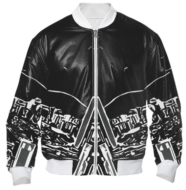 Light weight bombr jacket with your choice of white or black ribbing slight padding zip up front and side pockets. The inside is adorned with PAOM straps for swinging over your shoulders so you dont have to hold it.