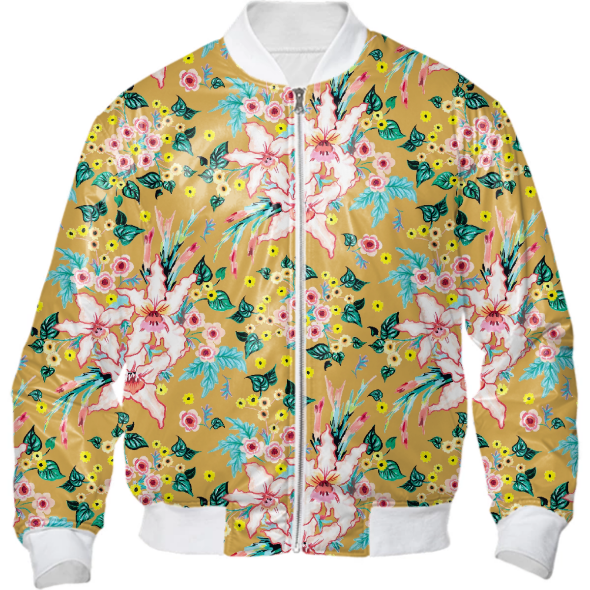 Light weight bombr jacket with your choice of white or black ribbing slight padding zip up front and side pockets. The inside is adorned with PAOM straps for swinging over your shoulders so you dont have to hold it.