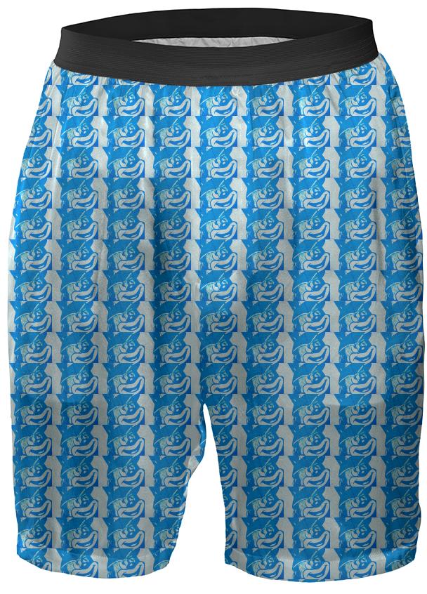 Loose fit silk boxers with elastic waistband buttoned front fly side seam pockets and one buttoned back pocket.