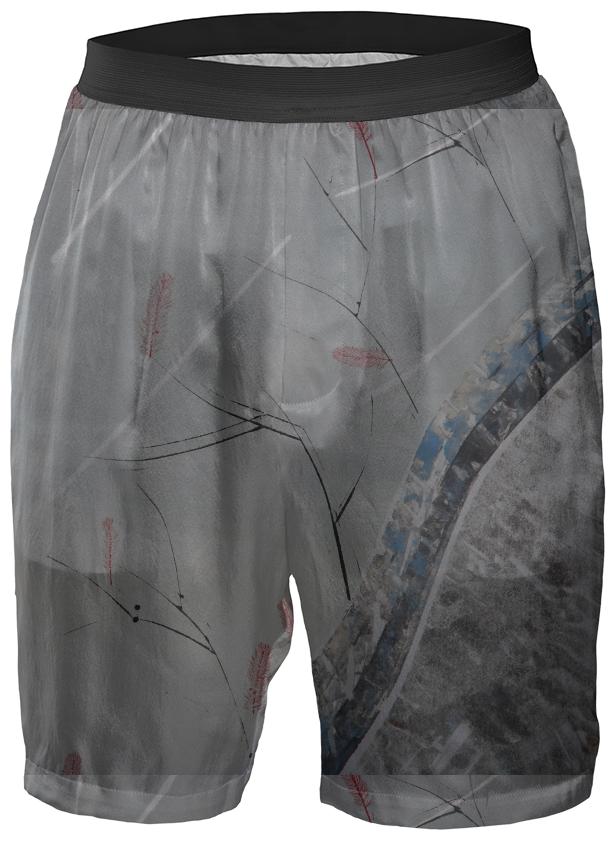 Loose fit silk boxers with elastic waistband buttoned front fly side seam pockets and one buttoned back pocket.