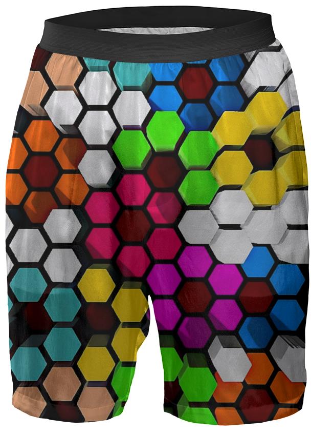 Loose fit silk boxers with elastic waistband buttoned front fly side seam pockets and one buttoned back pocket.