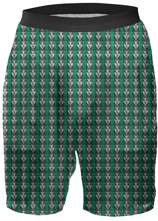 Loose fit silk boxers with elastic waistband buttoned front fly side seam pockets and one buttoned back pocket.