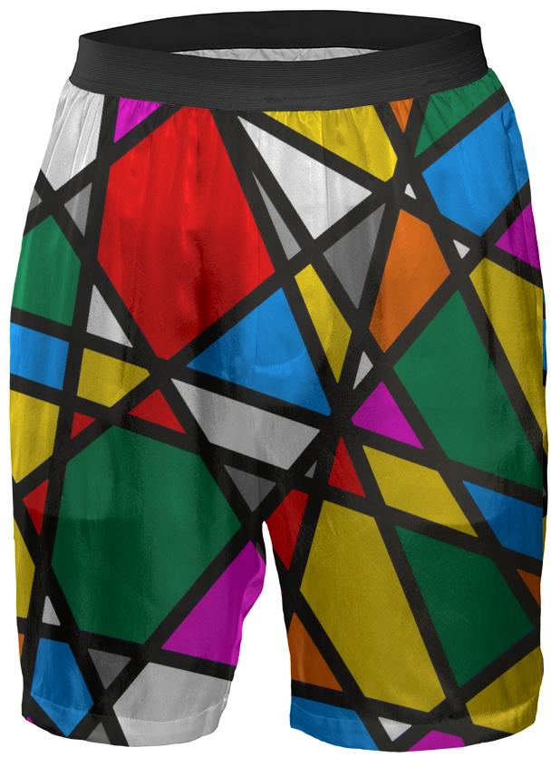 Loose fit silk boxers with elastic waistband buttoned front fly side seam pockets and one buttoned back pocket.