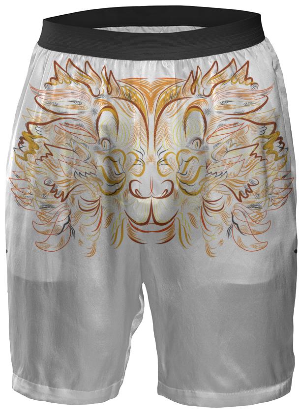 Loose fit silk boxers with elastic waistband buttoned front fly side seam pockets and one buttoned back pocket.