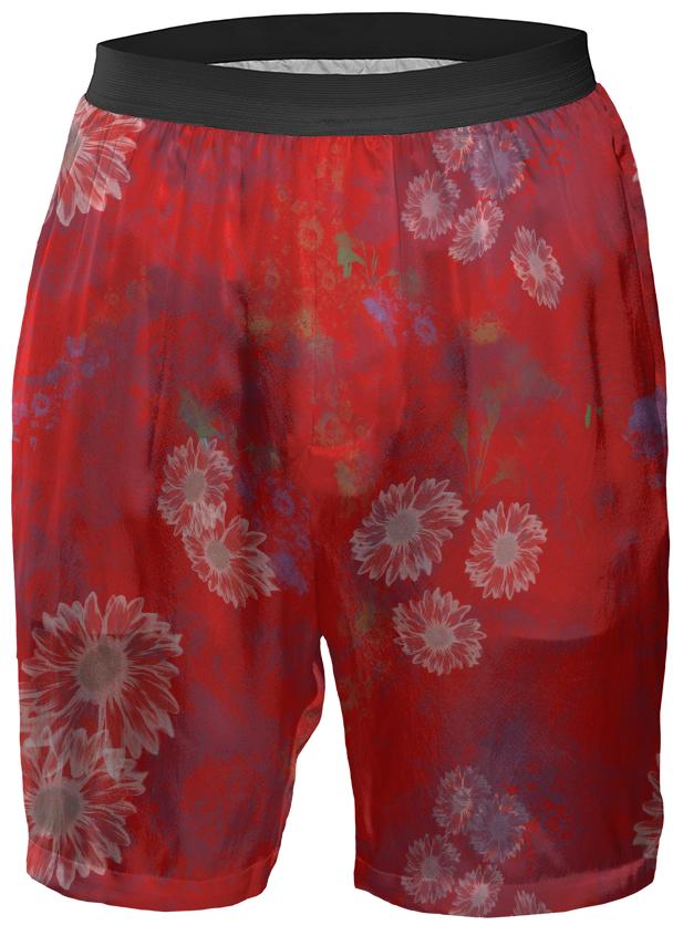 Loose fit silk boxers with elastic waistband buttoned front fly side seam pockets and one buttoned back pocket.