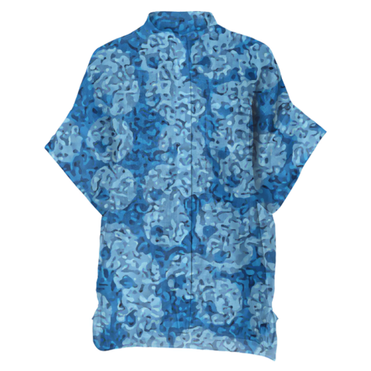 Unisex loose fit boxy linen shirt with front left side pocket. Mandarin collar with plastic buttons down the front.