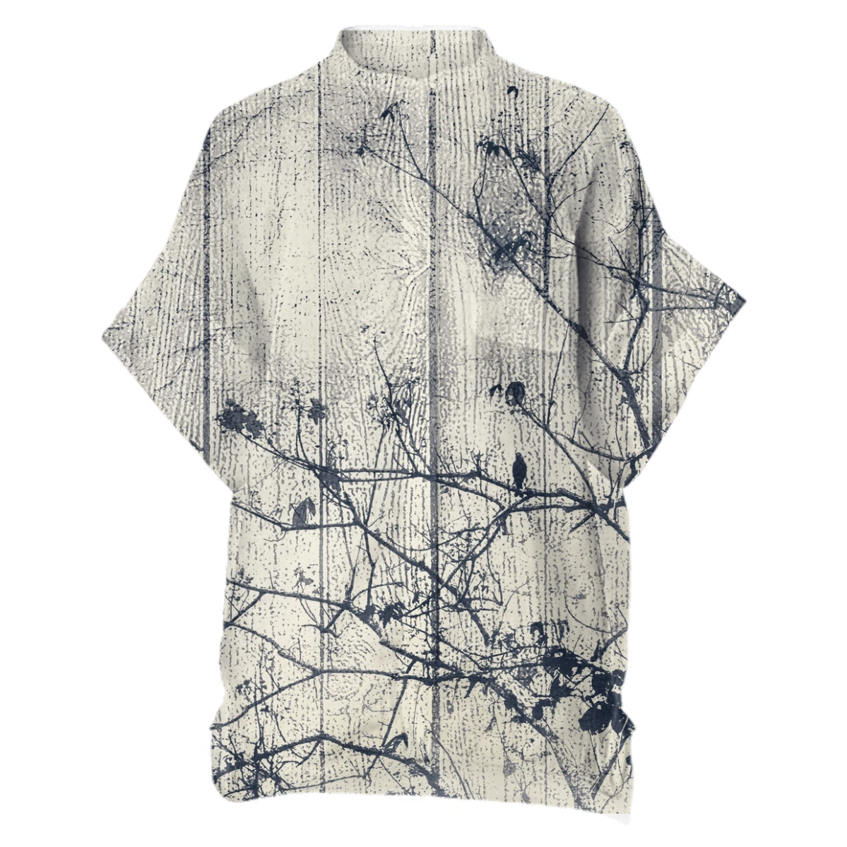 Unisex loose fit boxy linen shirt with front left side pocket. Mandarin collar with plastic buttons down the front.