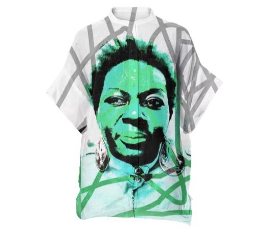 Unisex loose fit boxy linen shirt with front left side pocket. Mandarin collar with plastic buttons down the front.