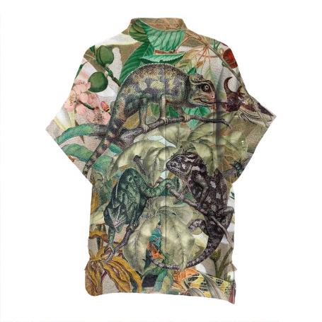 Unisex loose fit boxy linen shirt with front left side pocket. Mandarin collar with plastic buttons down the front.