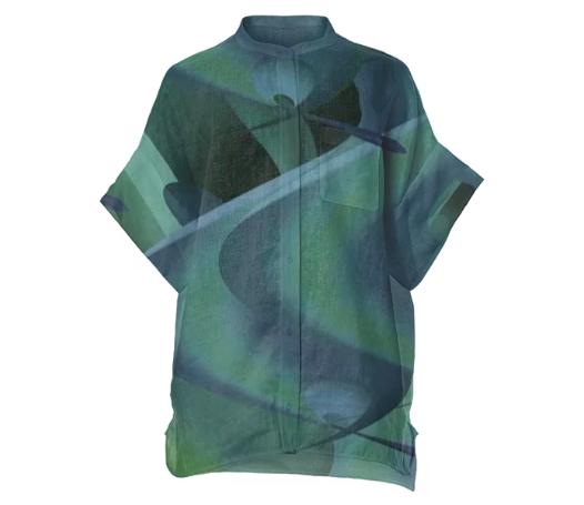 Unisex loose fit boxy linen shirt with front left side pocket. Mandarin collar with plastic buttons down the front.