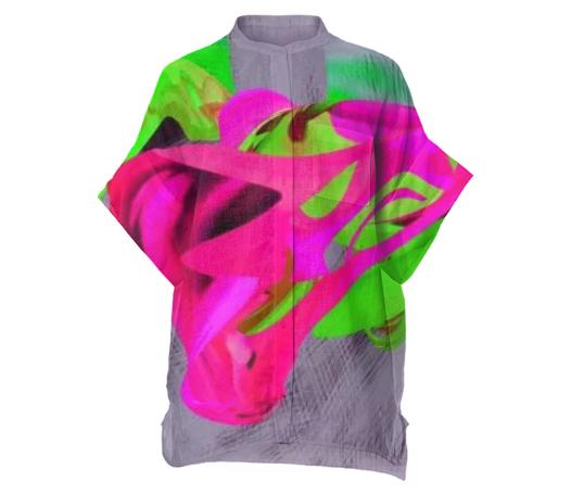 Unisex loose fit boxy linen shirt with front left side pocket. Mandarin collar with plastic buttons down the front.