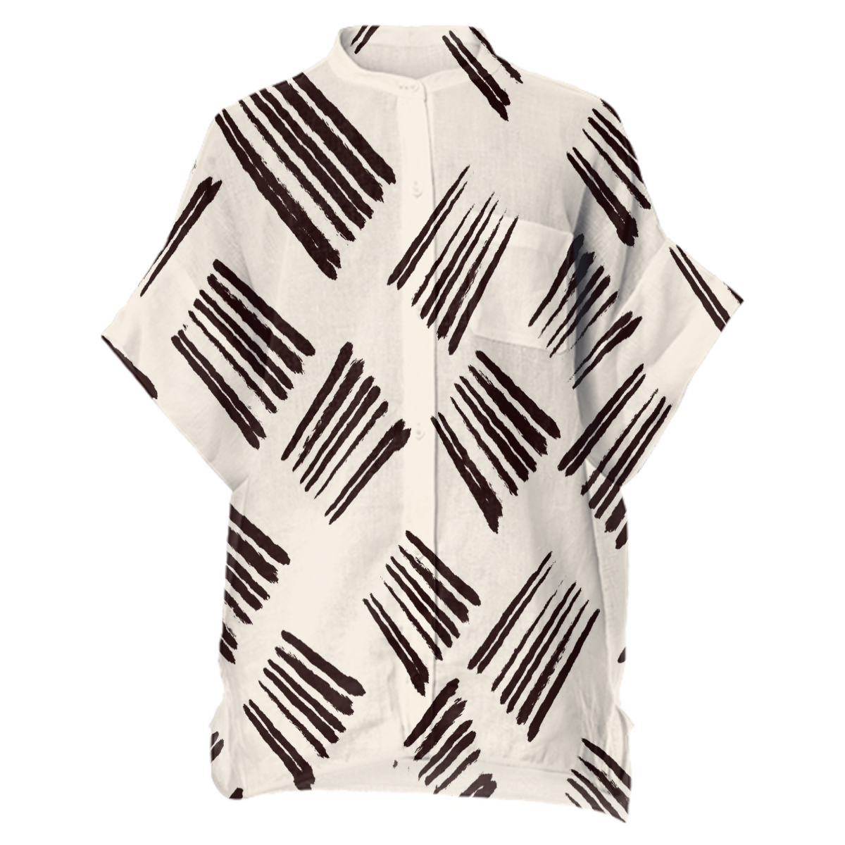 Unisex loose fit boxy linen shirt with front left side pocket. Mandarin collar with plastic buttons down the front.
