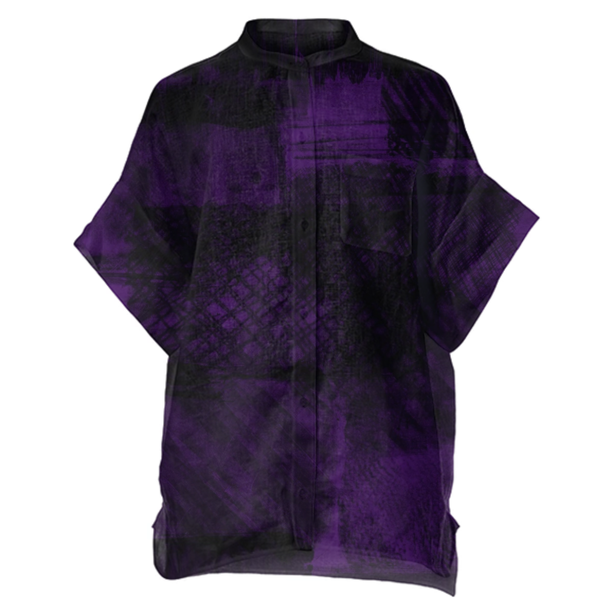 Unisex loose fit boxy linen shirt with front left side pocket. Mandarin collar with plastic buttons down the front.