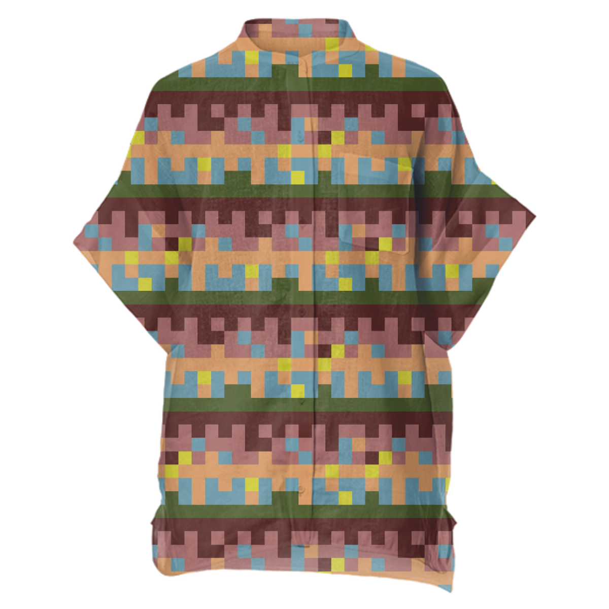 Unisex loose fit boxy linen shirt with front left side pocket. Mandarin collar with plastic buttons down the front.