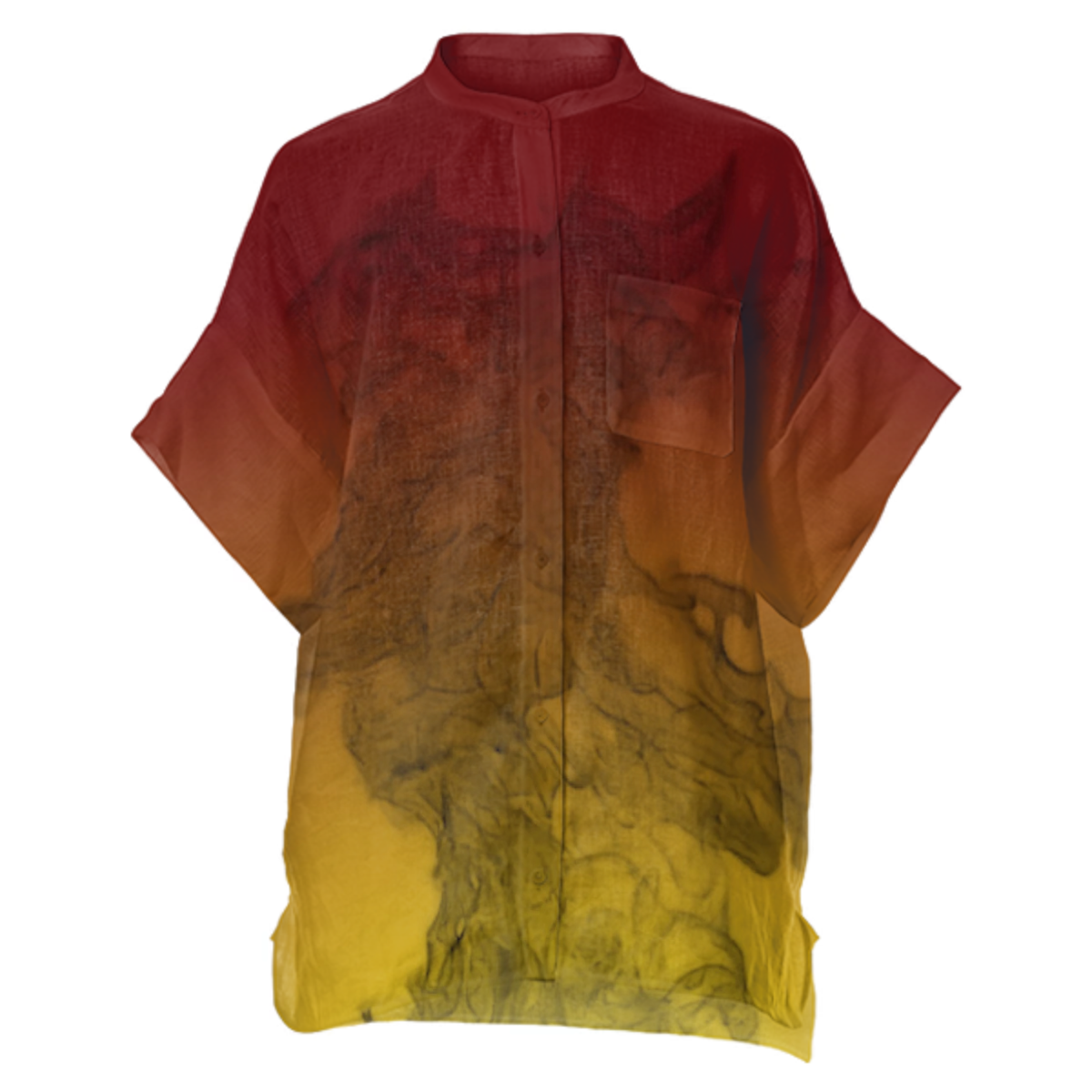 Unisex loose fit boxy linen shirt with front left side pocket. Mandarin collar with plastic buttons down the front.