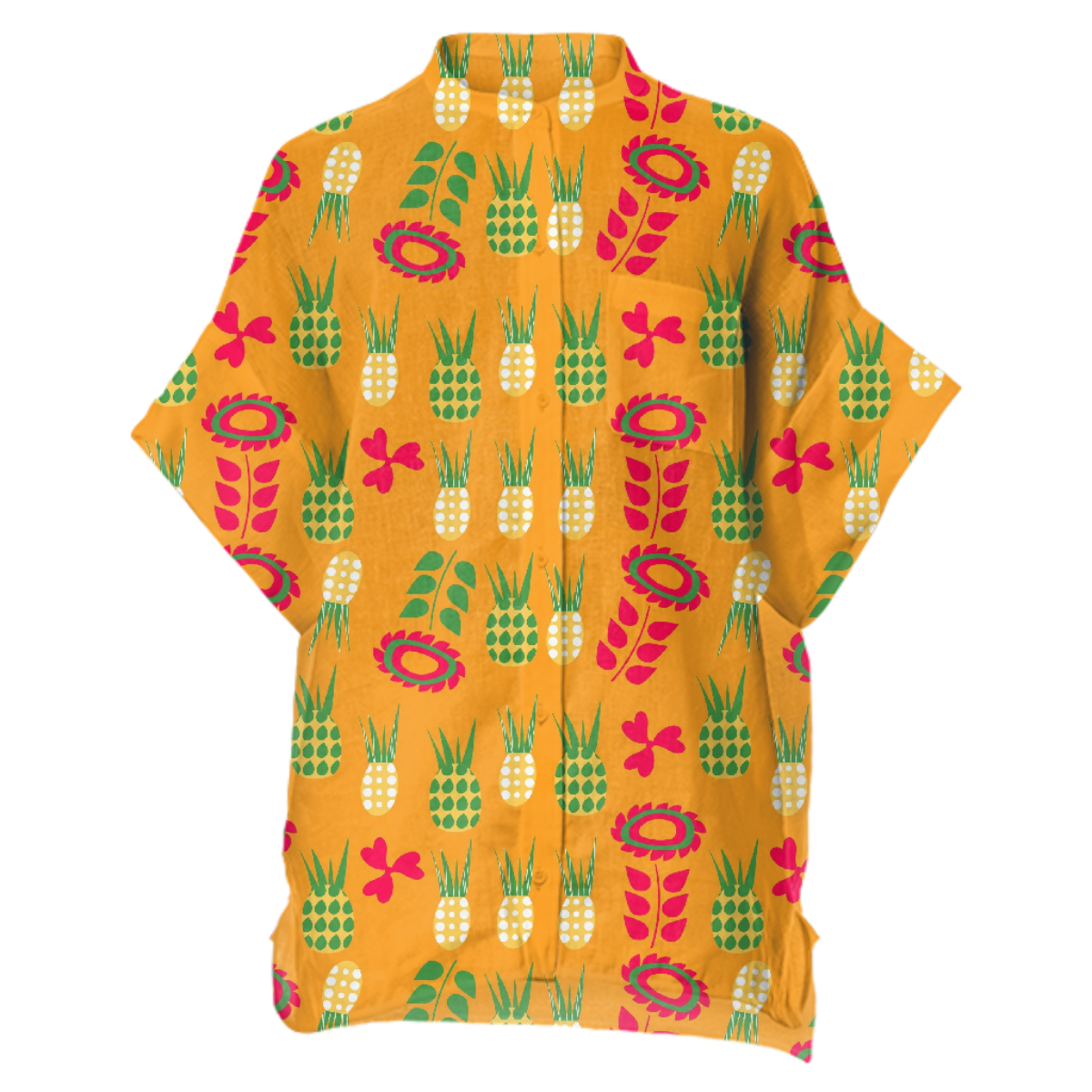 Unisex loose fit boxy linen shirt with front left side pocket. Mandarin collar with plastic buttons down the front.