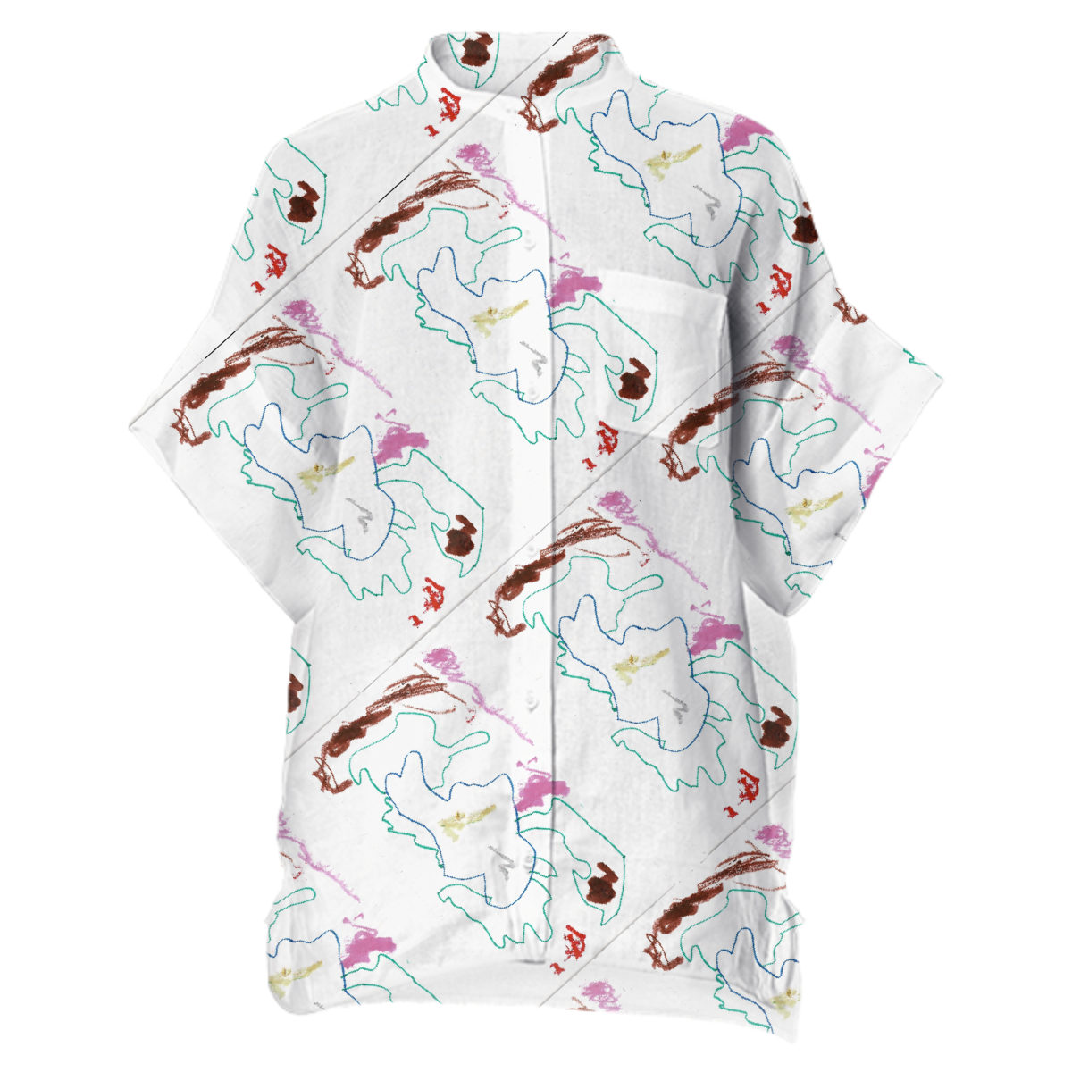 Unisex loose fit boxy linen shirt with front left side pocket. Mandarin collar with plastic buttons down the front.