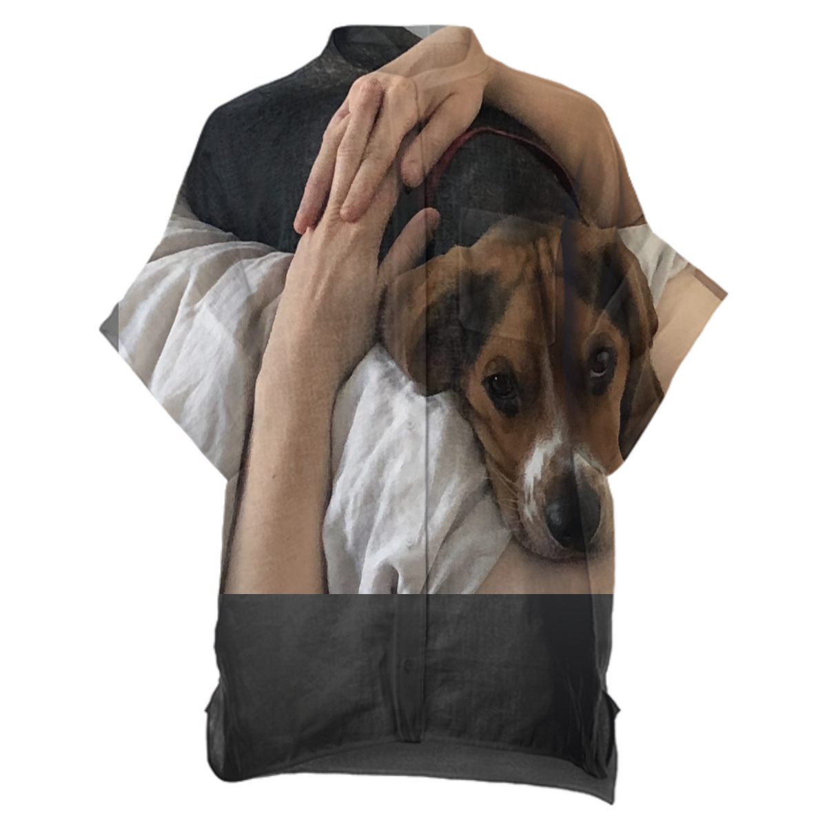The uploaded file will be printed on the entire front and be mirrored on the back. Because of our cut and sew process some print elements on pockets seams and sleeves might not match up. For best results please upload a PNG or JPG with RGB color profile and dimensions of at least 35 inches width by 20 inches length. DPI can be as low as 72.