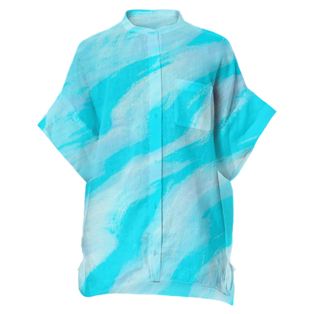 Unisex loose fit boxy linen shirt with front left side pocket. Mandarin collar with plastic buttons down the front.