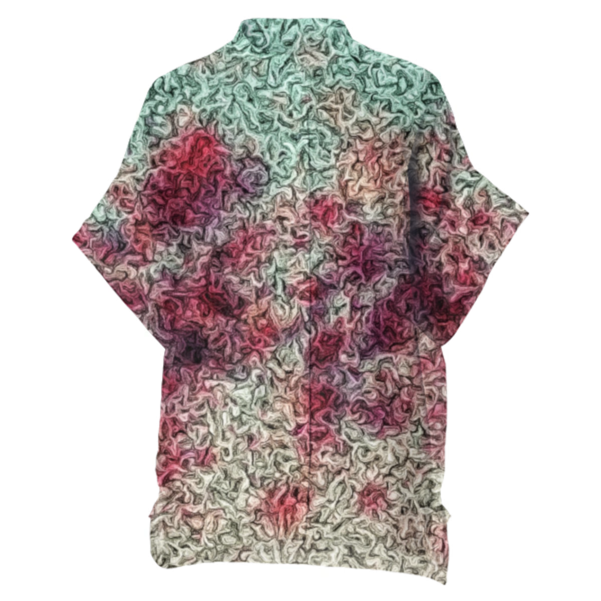 Unisex loose fit boxy linen shirt with front left side pocket. Mandarin collar with plastic buttons down the front.