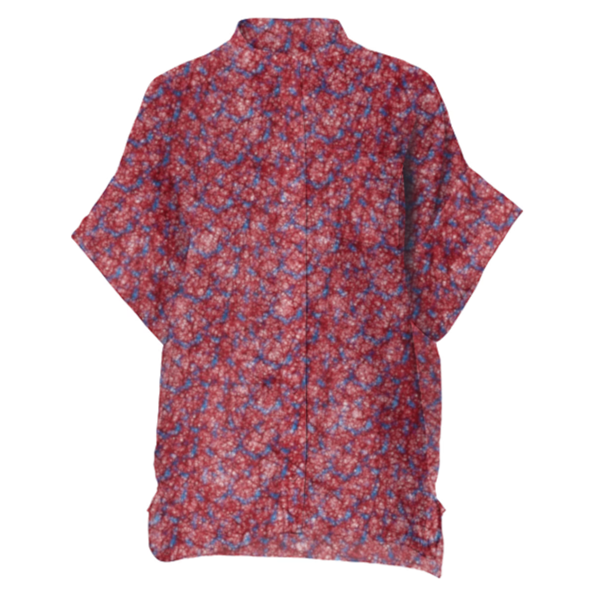 Unisex loose fit boxy linen shirt with front left side pocket. Mandarin collar with plastic buttons down the front.
