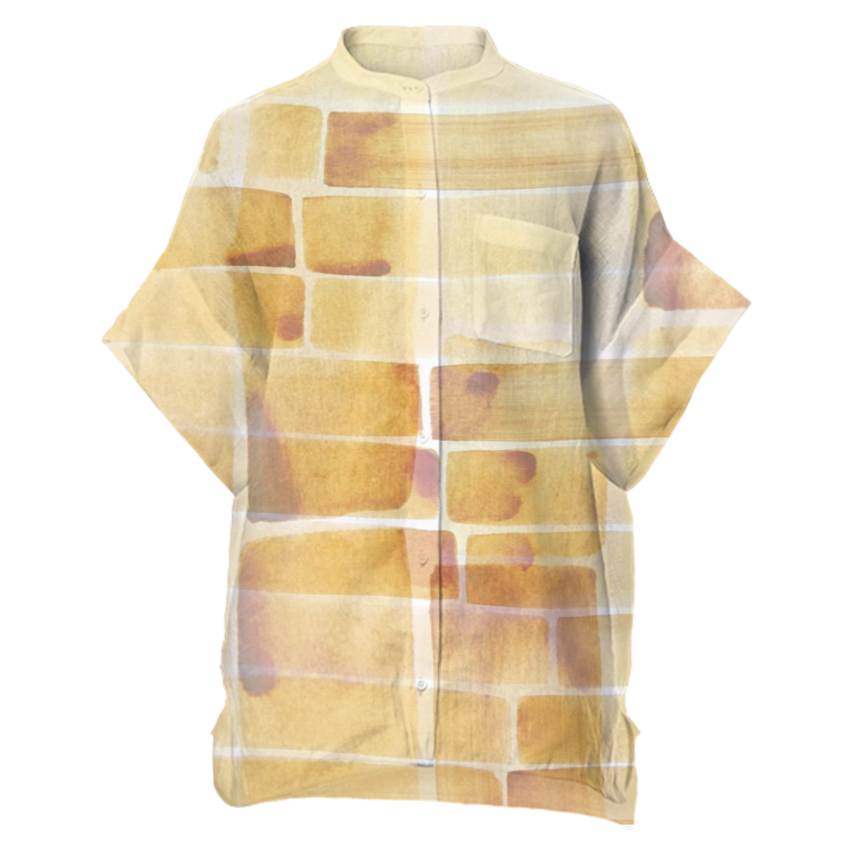 Unisex loose fit boxy linen shirt with front left side pocket. Mandarin collar with plastic buttons down the front.