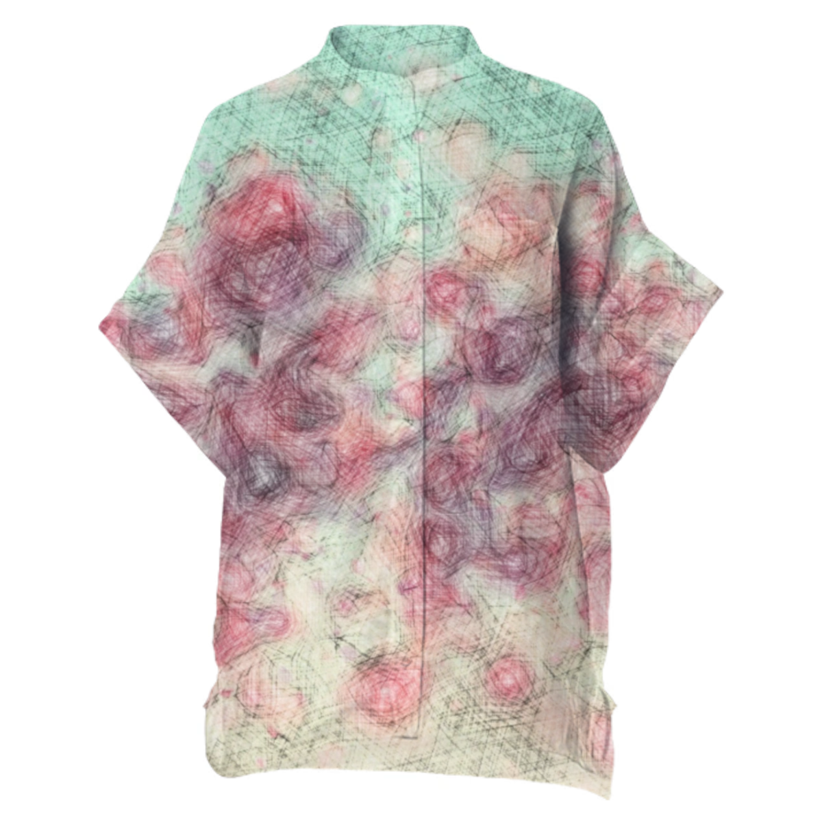 Unisex loose fit boxy linen shirt with front left side pocket. Mandarin collar with plastic buttons down the front.