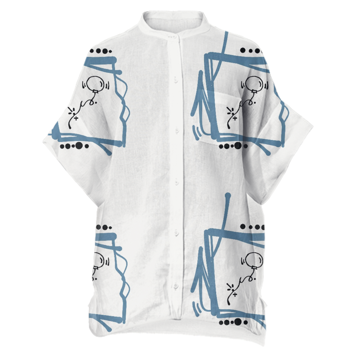 Unisex loose fit boxy linen shirt with front left side pocket. Mandarin collar with plastic buttons down the front.