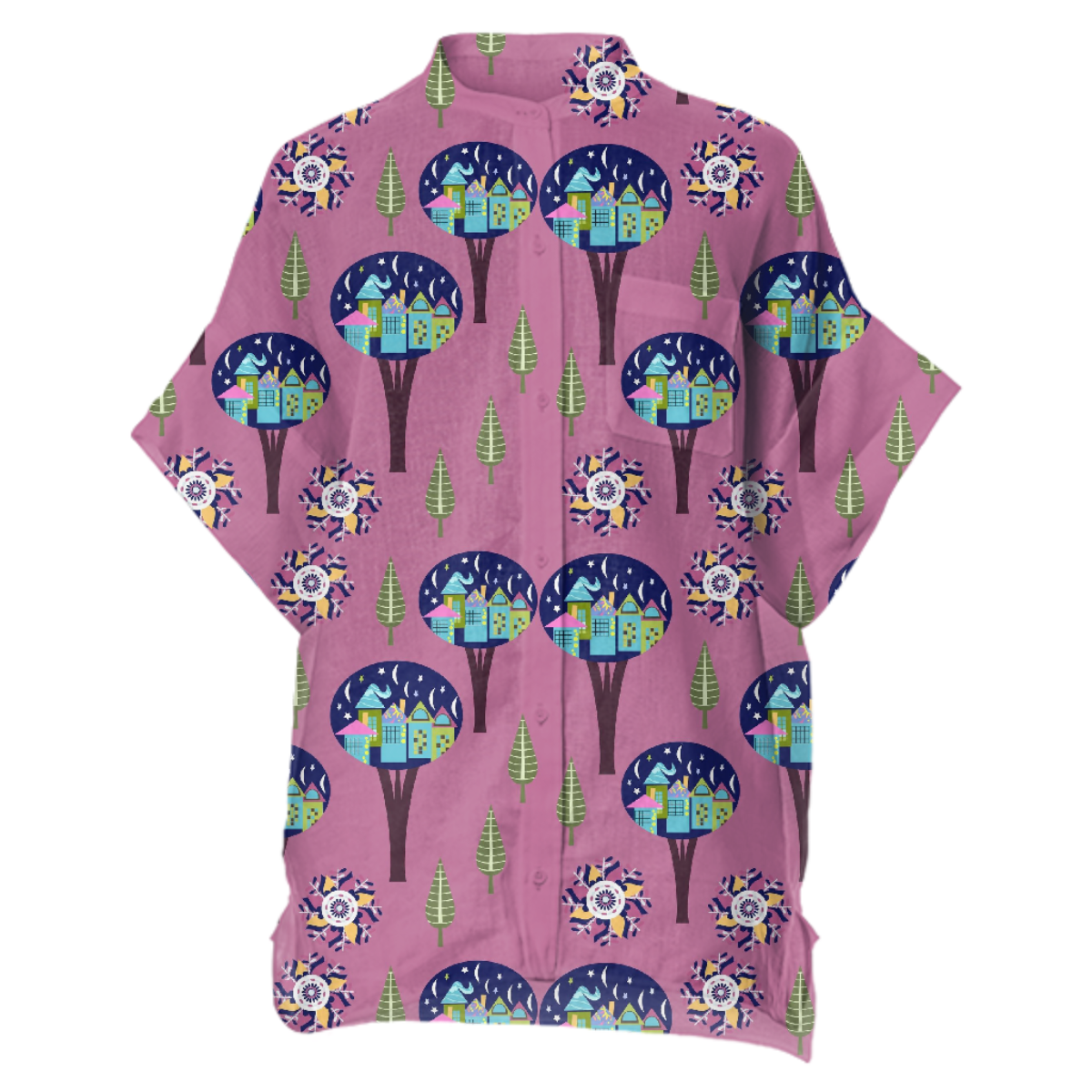 Unisex loose fit boxy linen shirt with front left side pocket. Mandarin collar with plastic buttons down the front.