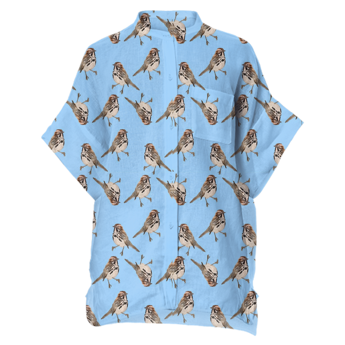 Unisex loose fit boxy linen shirt with front left side pocket. Mandarin collar with plastic buttons down the front.
