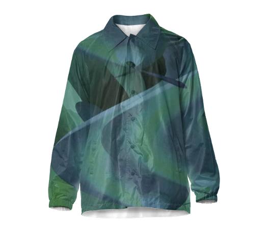 Light weight coach style jacket with side seam pockets metal snaps and elastic cuffs.
