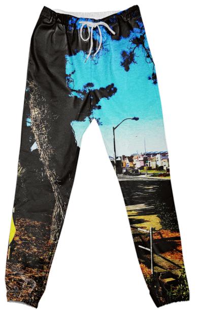 Jogger fit pants with drawstring elastic waistband side seam & back pockets and elastic cuffs.