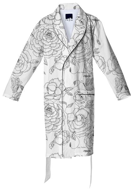 Comfortable fitting cotton robe with two front pockets and stylish black piping on the collar & pocket seams. Includes a black sash to tie at the waist or let hang through two side belt loops.